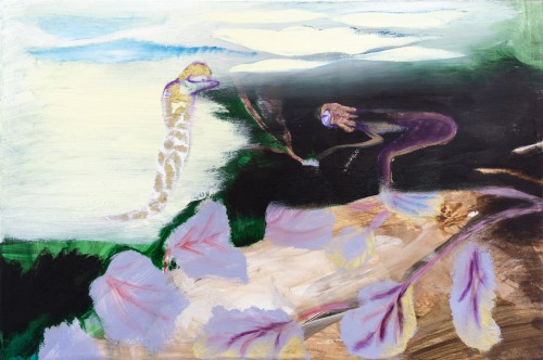 In her multifaceted artistic language, Youjin Yi unites objective references and abstract, painterly structures. Her works depict landscape spaces occupied by persons, animals, objects or hybrids. Seemingly dematerialized they fuse with their environment, emerge or take shape