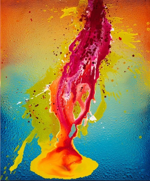 The motives and emotional mediums presented are: water, energy, depth and intangibility, fire, and colors. The elixir of life that, like the air, we breathe, is fleeting and unfathomable, yet unlike air – leaves no more than a wet glow upon the skin. Water that is colourless and yet reflects all colors. Water that creates fertility and quenches thirst, and the fire that purifies, carries and floods us, stands still or flows to the sea, which is never the same when we dive in it. It is part of the myth of life and the hereafter that erases the memory and stores all memory as it flows through layers of rock.
