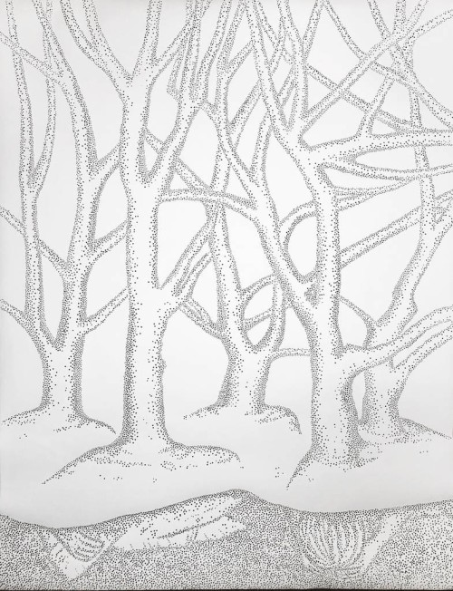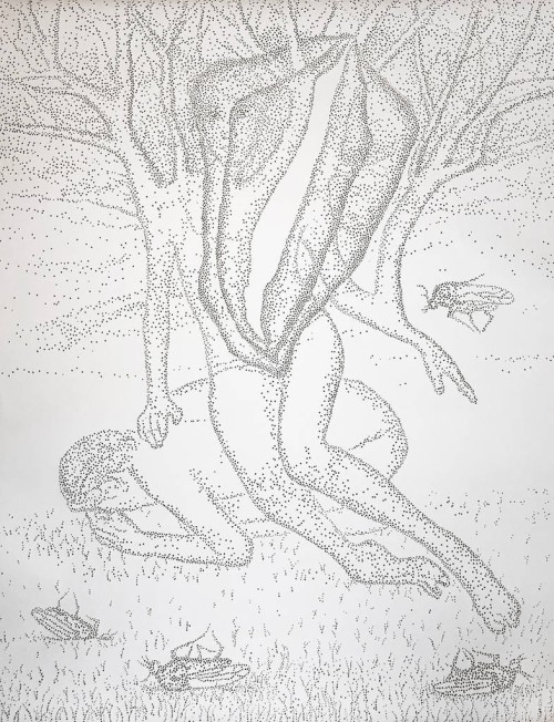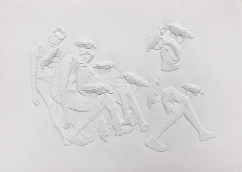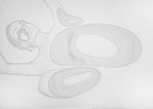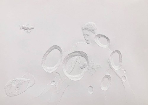 Since her beginnings the artist is immersed in a constant research with very diverse interests: mathematics, physics, music, philosophy. Her work is multidisciplinary and as delicate and beautiful as it is obsessive and disturbing. She explores and uses space and materials, also with her delicate works on perforated white paper with which she began her artistic career and which have become her own personal language. The fragility of the material almost resembles human skin, creating a relief through her punctures. In a very subtle way, these art pieces transform a normally two-dimensional material such as paper into a three-dimensional piece by creating a drawing through small protrusions that slightly come out from the surface, forming an image not through color or lines, but through shadow, the light created through the conical shapes made out of paper.