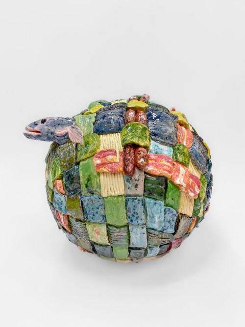 Dominika Bednarsky studied from 2015 at the renowned Hochschule für Gestaltung in Offenbach, Germany. She works with glazed ceramics and often chooses motifs from nature and alienates them in a humorous and at the same time alienating way.