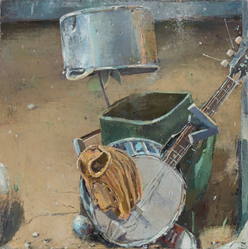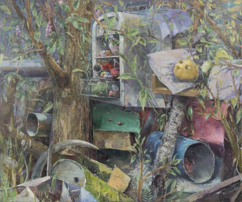 Bornstück paints compositions from an anachronistic world of consumption, antique symbols of status and cultural pleasure, which he does not exhibit conceptually as ready-made, but translates into figurative painting. This makes one think of a "dirty" Leipzig School or of wild Impressionism. In keeping with the pictorial motif, a patina also seems to have settled over the painting. From the closest proximity, the painterly details, which dissolve abstractly, are of interest here. Paint is not applied thinly, but pastos. In some places it is pressed on and off again or scraped off and then painted over again. Gestures and roughness can also only be seen when looking directly into the eyes of the canvas. In small strokes, a more chaotic brushstroke is reflected, but without disturbing the figurative representation premise that makes up the picture as a whole.