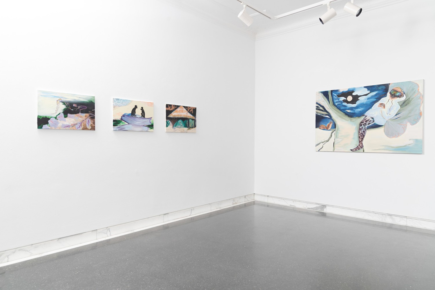 In her multifaceted artistic language, Youjin Yi unites objective references and abstract, painterly structures. Her works depict landscape spaces occupied by persons, animals, objects or hybrids. Seemingly dematerialized they fuse with their environment, emerge or take shape