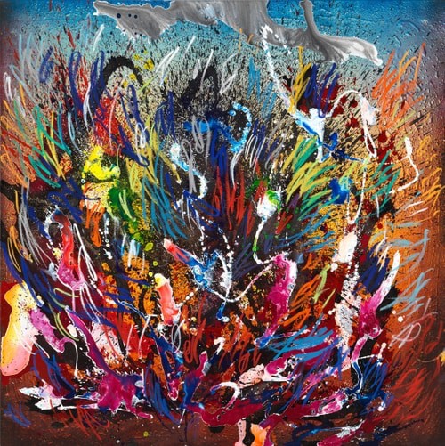 The motives and emotional mediums presented are: water, energy, depth and intangibility, fire, and colors. The elixir of life that, like the air, we breathe, is fleeting and unfathomable, yet unlike air – leaves no more than a wet glow upon the skin. Water that is colourless and yet reflects all colors. Water that creates fertility and quenches thirst, and the fire that purifies, carries and floods us, stands still or flows to the sea, which is never the same when we dive in it. It is part of the myth of life and the hereafter that erases the memory and stores all memory as it flows through layers of rock.
