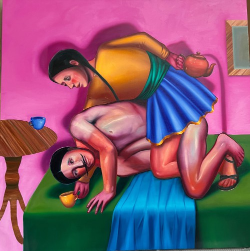 In her works, the artist questions preconceived notions of gender, Western history and colonialism as well as questions of power and powerlessness. Her works are scenic representations in small, concentrated spaces, visually appealing but uncomfortable oddities that evoke an eerie atmosphere full of metaphors and socio-political references. The expansion of the image with sculptural and installative elements adds an additional dimension to the works and invites the audience to become part of their bizarre pantomimes.